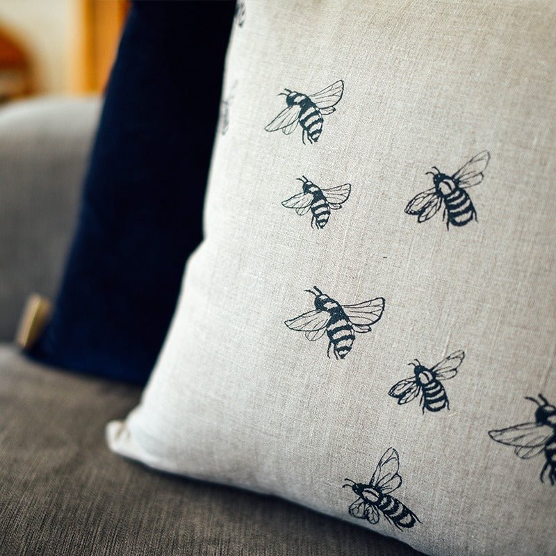 Bee Cushion Hand Printed Pure Linen