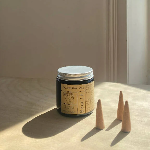 Bouclé Californian Sage Incense Cones in Amber Glass Jar