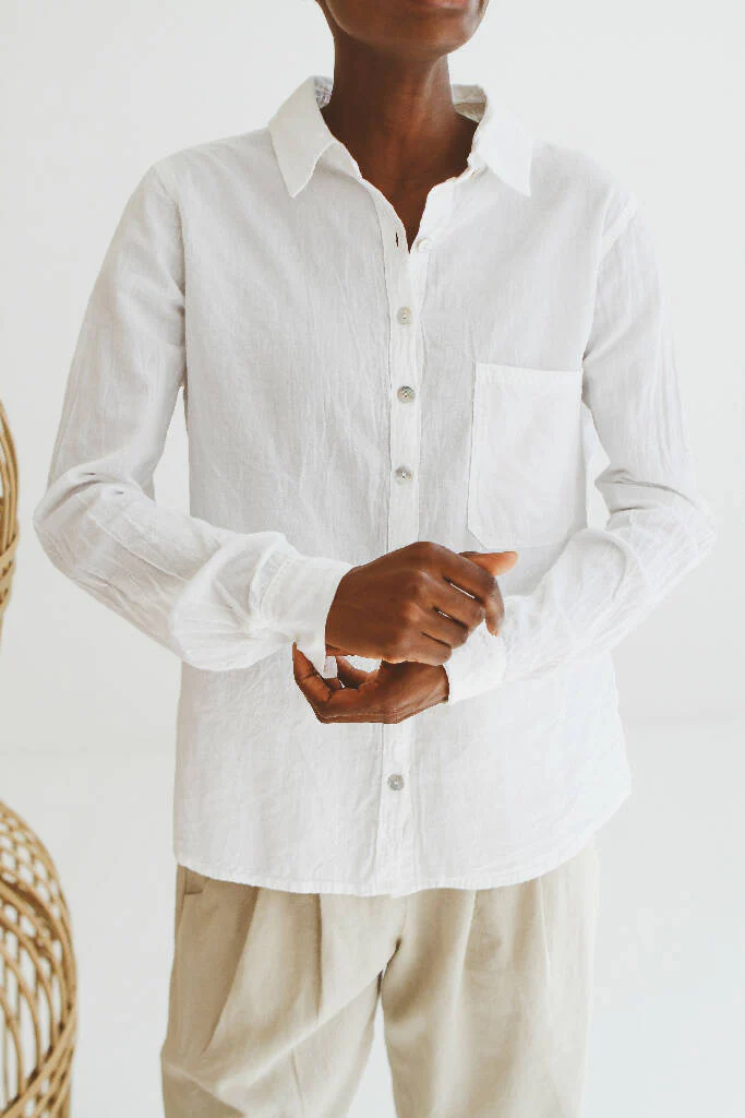 An exceptional women’s cotton shirt, and wardrobe staple, that has been ethically made in Cape Town by Just Cruizin Clothing. The cotton needs little or no ironing – ideal for taking on holiday or travelling in too – unless you prefer to iron the natural creases out!