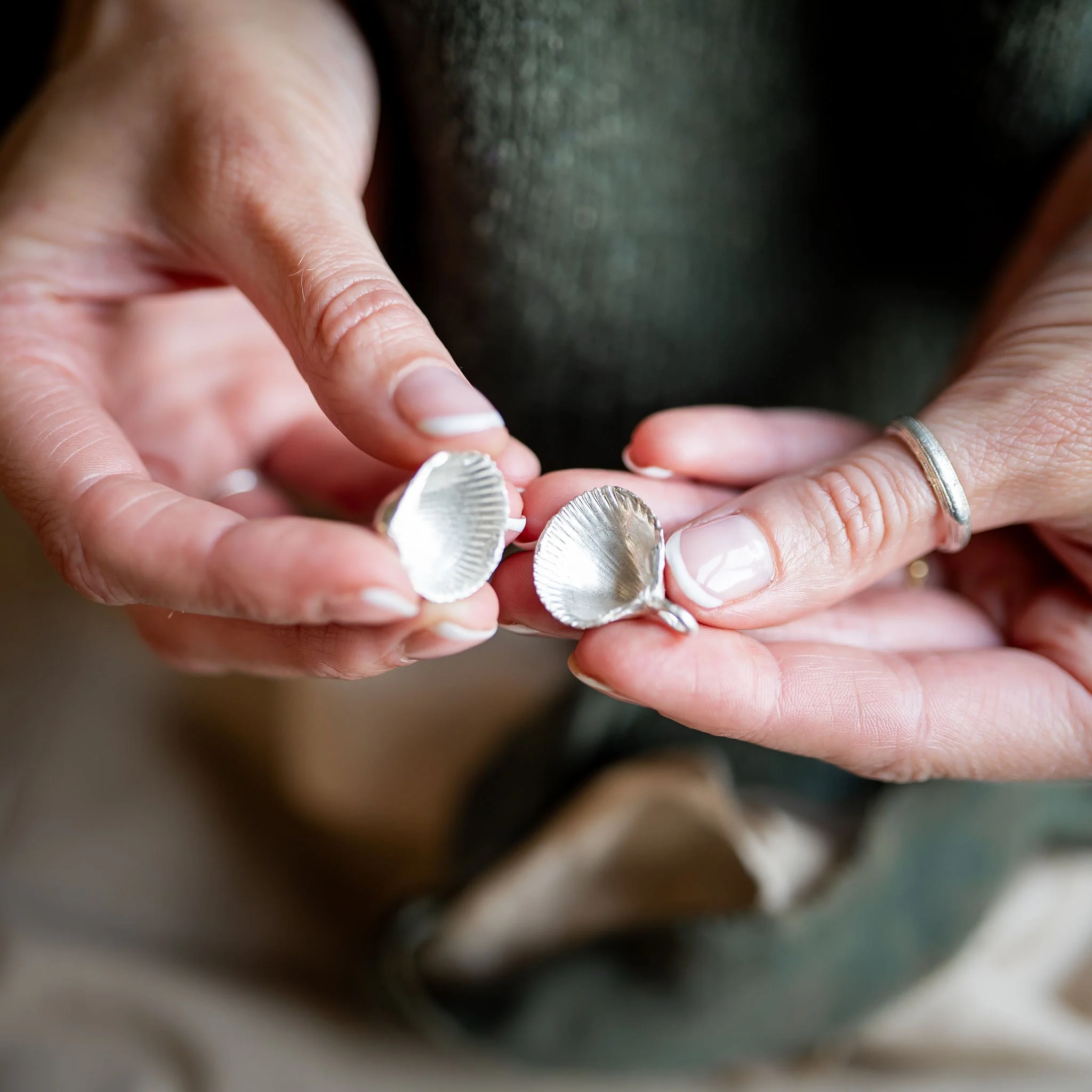 Every design is handmade and will require you to send into the studio a small amount of ashes to seal inside the shell. Once an order is placed online you will be sent a small parcel to guide you through the processes of sending in the ashes or other precious content to be permantley encapsulated inside.