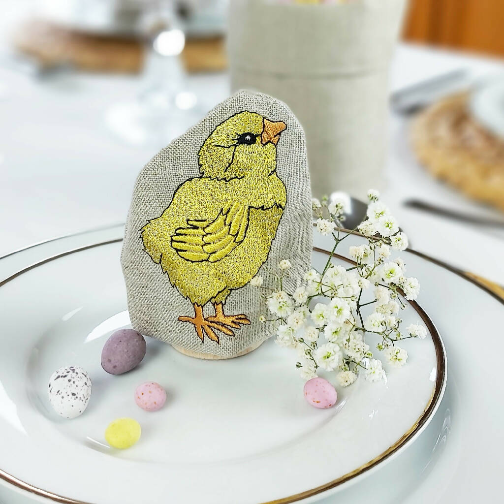 Made from 100% linen with cotton lining. Each egg cosy is padded to keep your eggs extra warm, whilst each little chick is embroidered in satin thread.