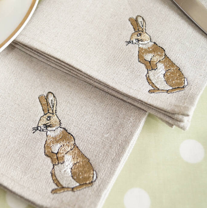 Embroidered Rabbit Cocktail Napkins - Set of Four—