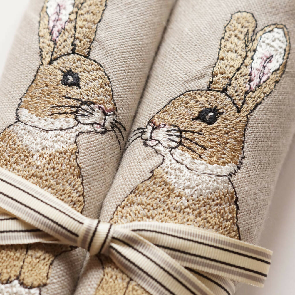 Know someone who loves entertaining? Add a unique finishing touch to the dinner table with these fabric napkins. Delicately embroidered with a pair of rabbits, these napkins are perfect as a housewarming or anniversary gift, or for an animal or nature lover.