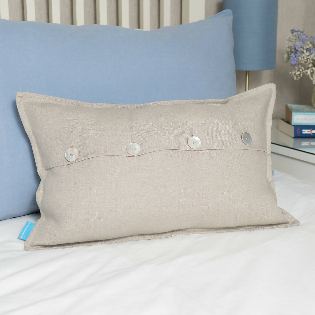 Embroidered with satin thread giving the swan motifs a delicate lustre, each cushion is made from 100% natural linen and finished with four mother of pearl buttons to close. Cushion includes a polycotton cushion pad and is recommended dry clean only.