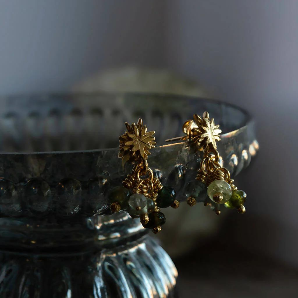 Gold Plated Silver Stars with Tourmalines and labradorite Drop Earrings