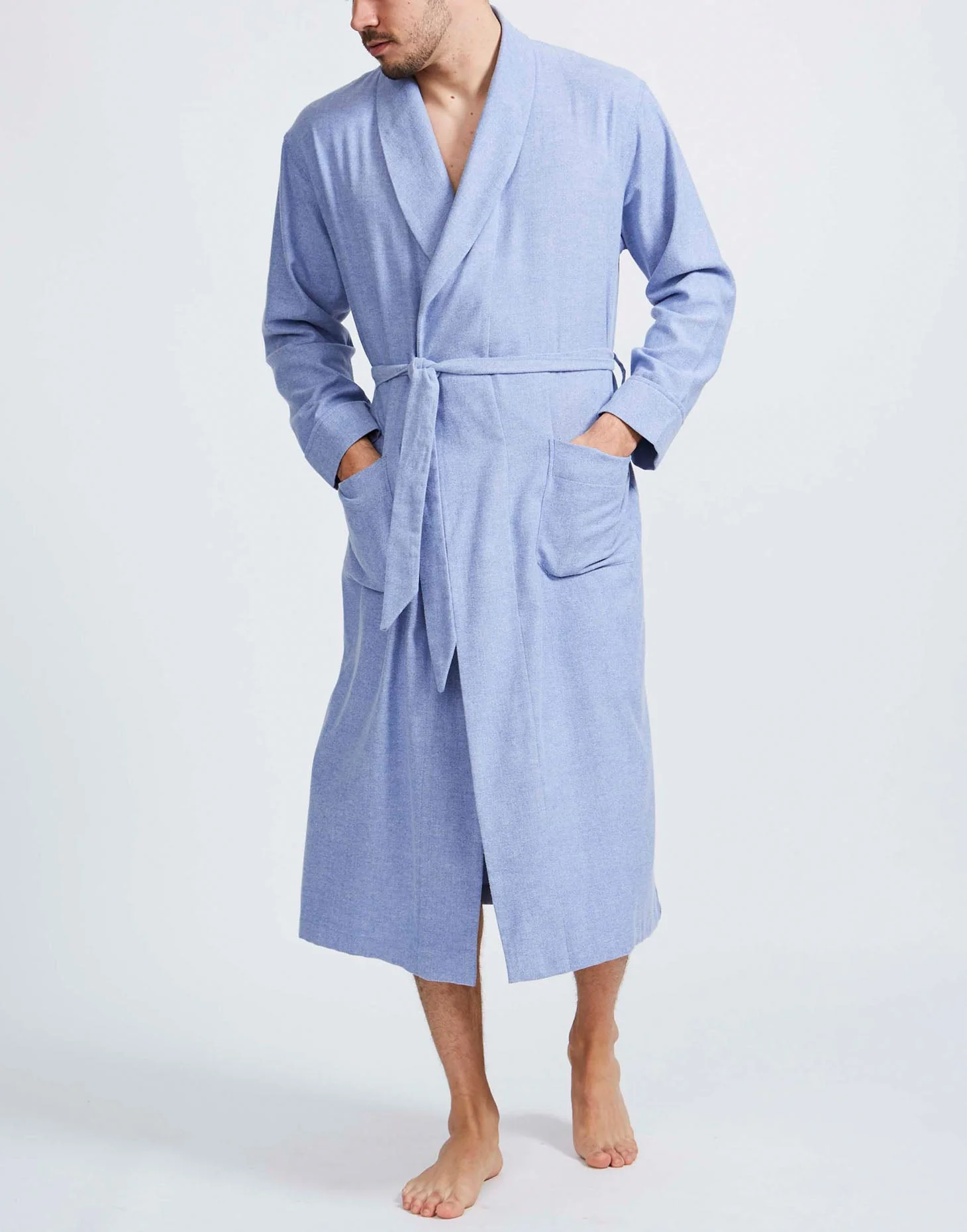 Men's Brushed Cotton Dressing Gown – Staffordshire Blue Herringbone