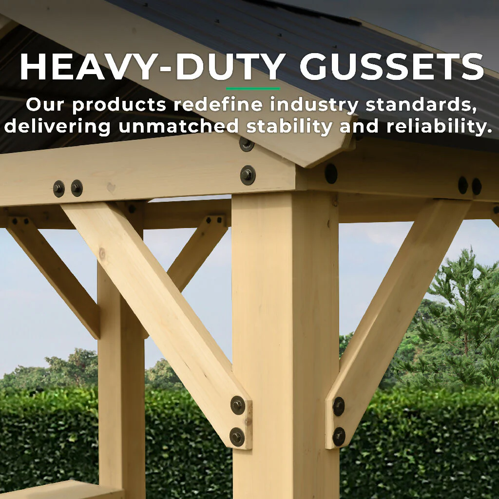- Heavy-duty, straight-line gussets add strength and stability