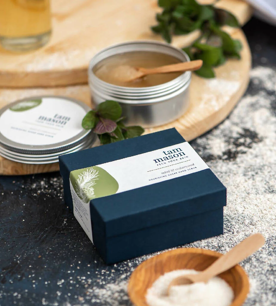 Beautifully boxed, our Hand Scrub will arrive with a blend card and our signature wooden spoon, which provides the perfect measure of loveliness needed to nourish your hard working hands.