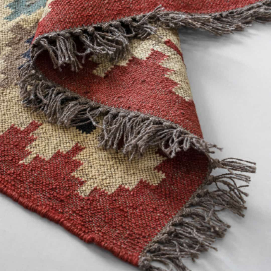Handmade kilim rug made with naturally sourced wool and jute.