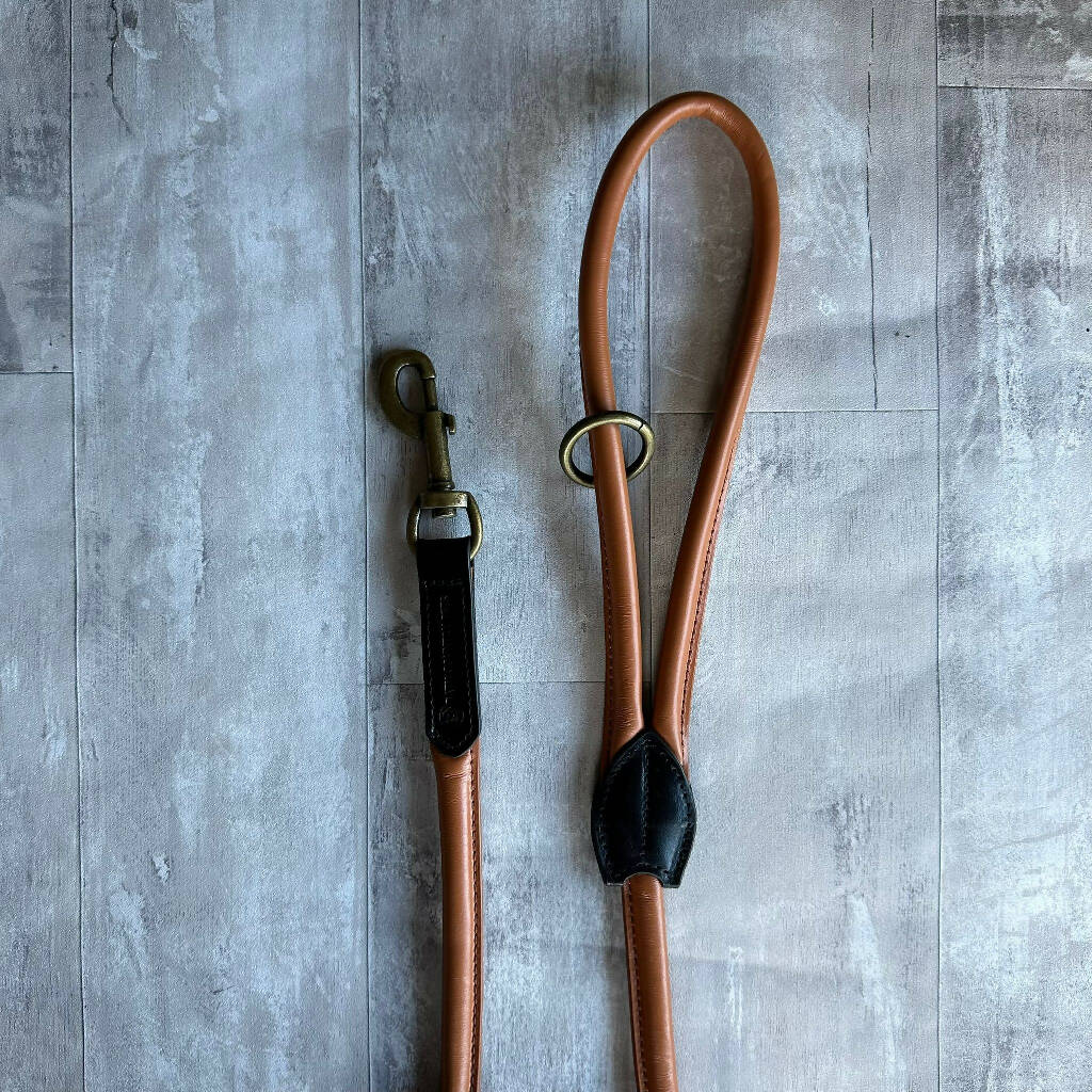 Super soft rolled leather with brass fittings make these elegant 1.1 metre leads comfortable for both you and your dog. The leads feature a padded handle with a brass ring that allows the lead to be halved in length for when you want to have closer control. Â