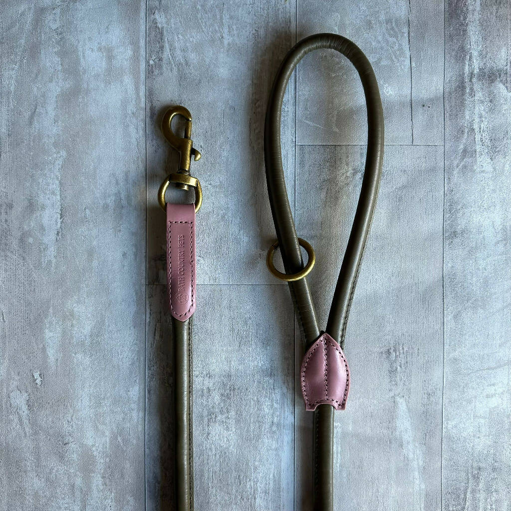 The brass swivel trigger clip stops the lead from becoming twisted. This option is from our classic colour pallet, with options in clover pink and grouse, which is a subtle khaki greenĀ to a greater or lesser extent.. the choice is yours!Ā These luxurious leads team up perfectly with our rolled leather collar options in the same colours.