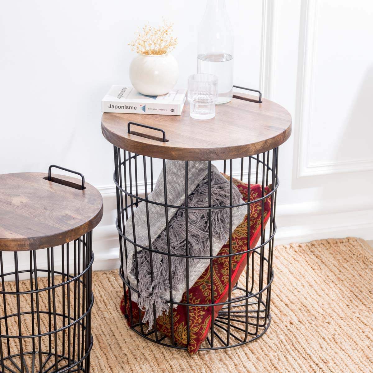 A practical alternative to traditional end tables. With a removable lid, you can use the basket as a storage solution for books, board games, and more.