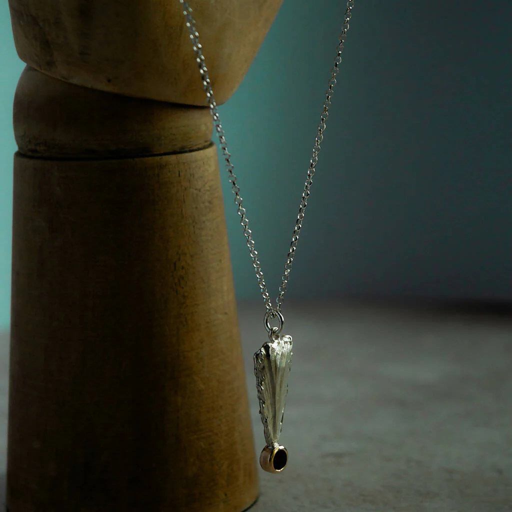 LIMITED EDITION only 2 pendants are made in this configuration of Silver, 9ct yellow Gold and Round 5mm Red Garnet.